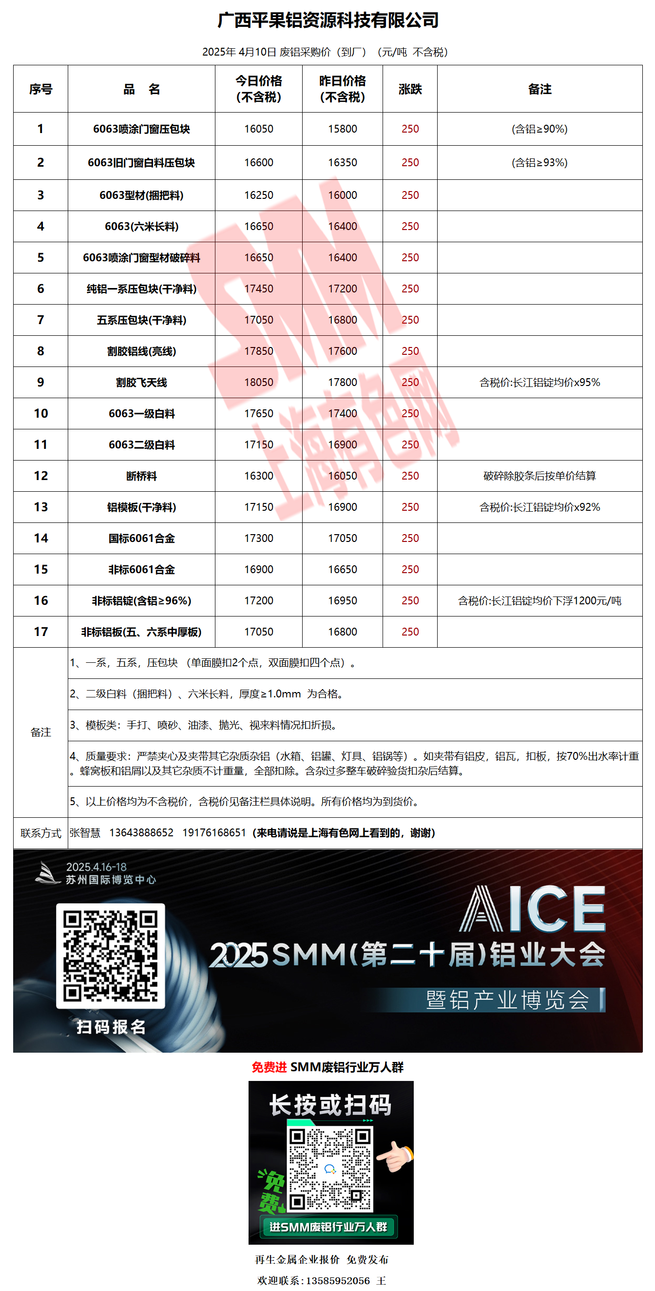 今日广西平果 废铝采购报价已更新,有货的朋友欢迎联系我们!