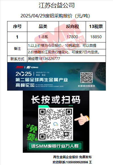今日江苏台益 废铝采购报价已更新,有货的朋友欢迎联系我们!
