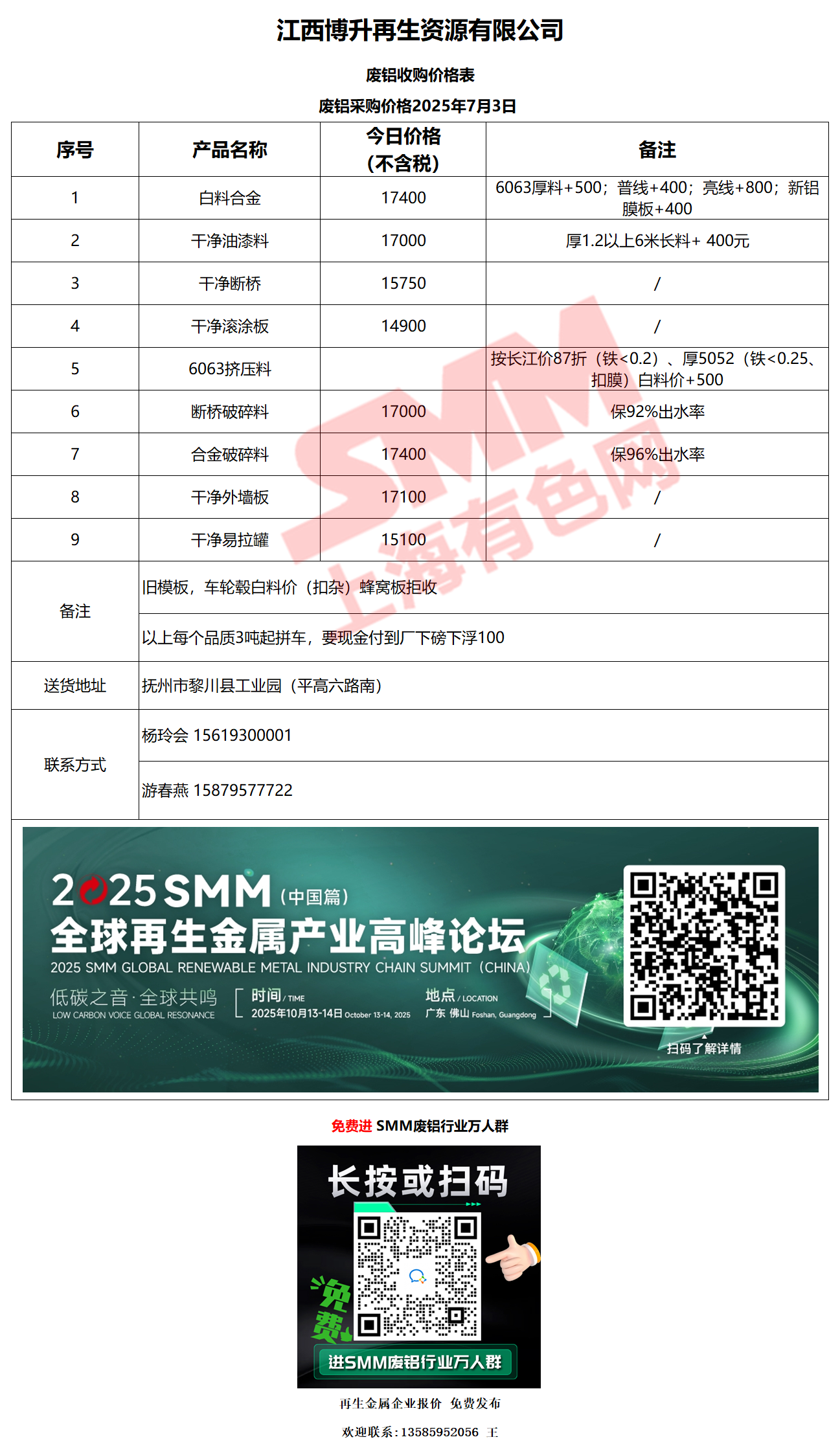 7月3日江西博升 废铝采购报价