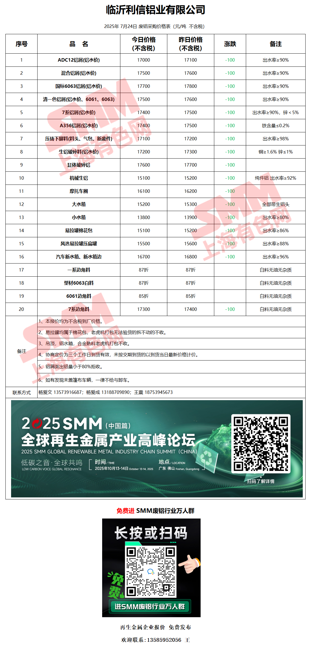 7月24日临沂利信 废铝采购报价