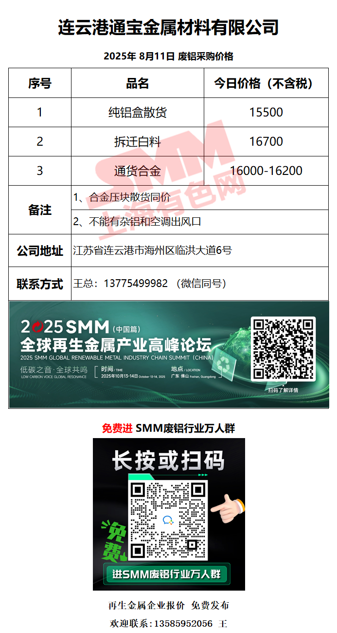 今日连云港通宝 废铝采购报价已更新,有货的朋友欢迎联系我们!