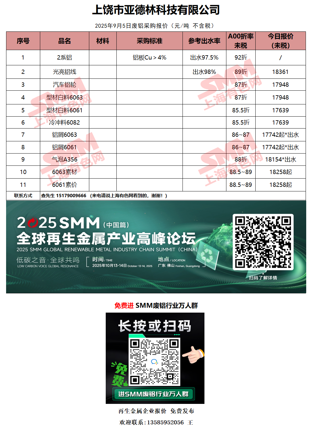 今日上饶市亚德林 废铝采购报价已更新,有货的朋友欢迎联系我们!