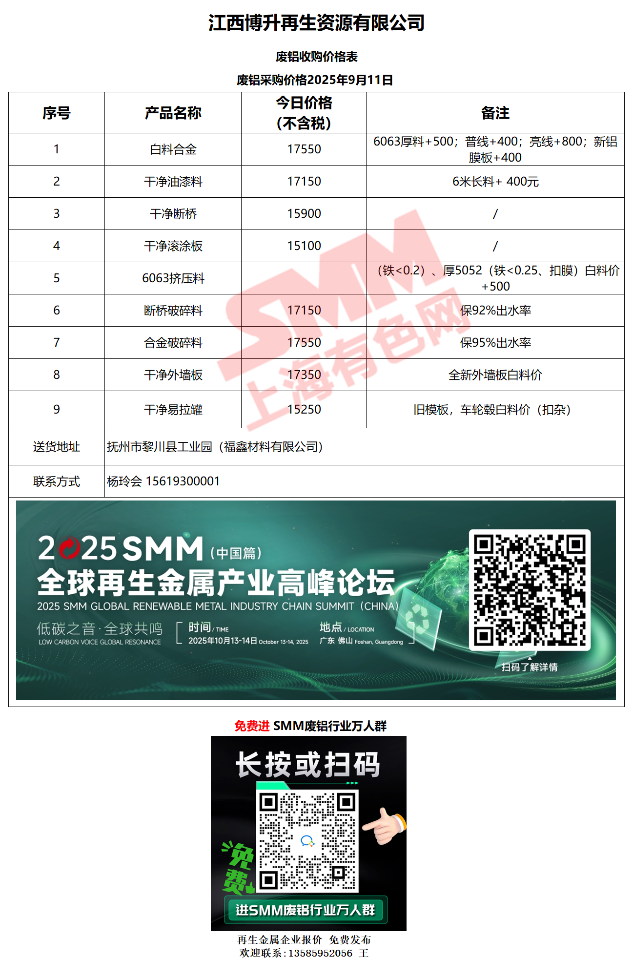 今日江西博升 废铝采购报价已更新,有货的朋友欢迎联系我们!
