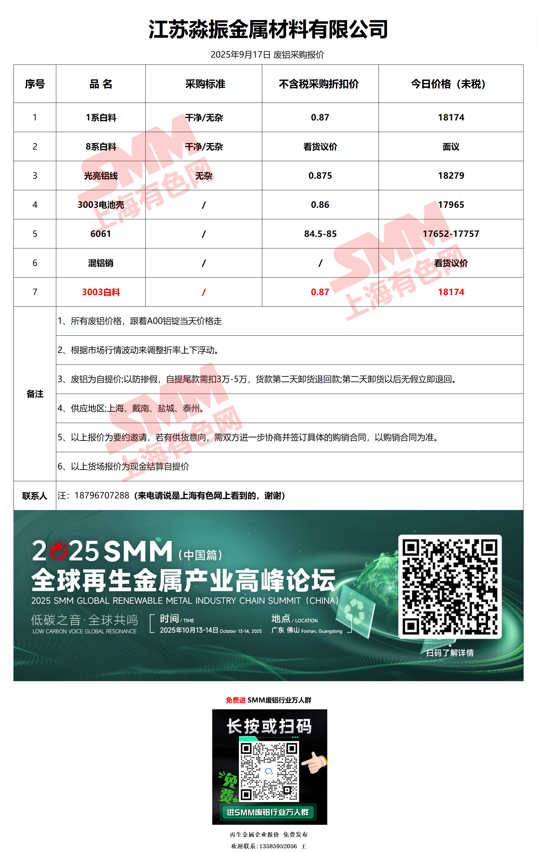 9月17日江苏淼振 废铝采购报价