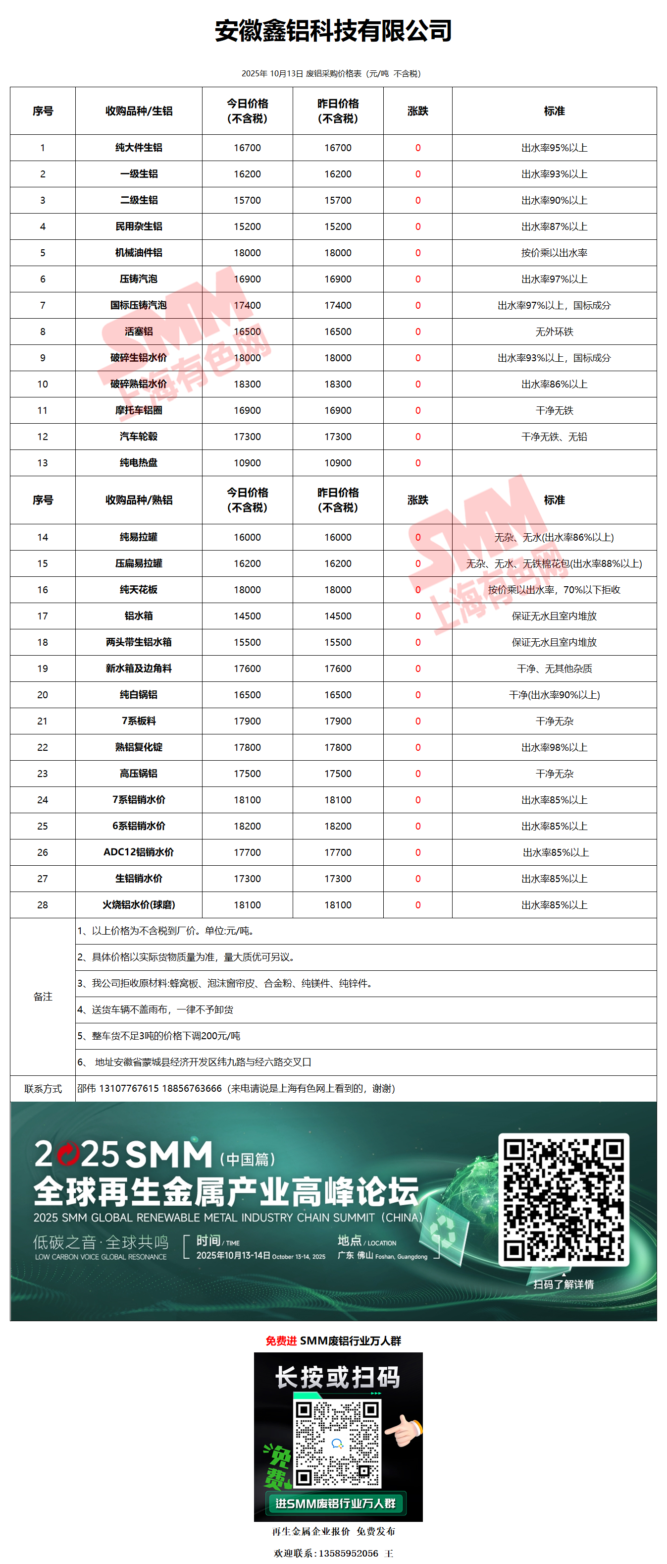 今日安徽鑫铝 废铝采购报价已更新,有货的朋友欢迎联系我们!