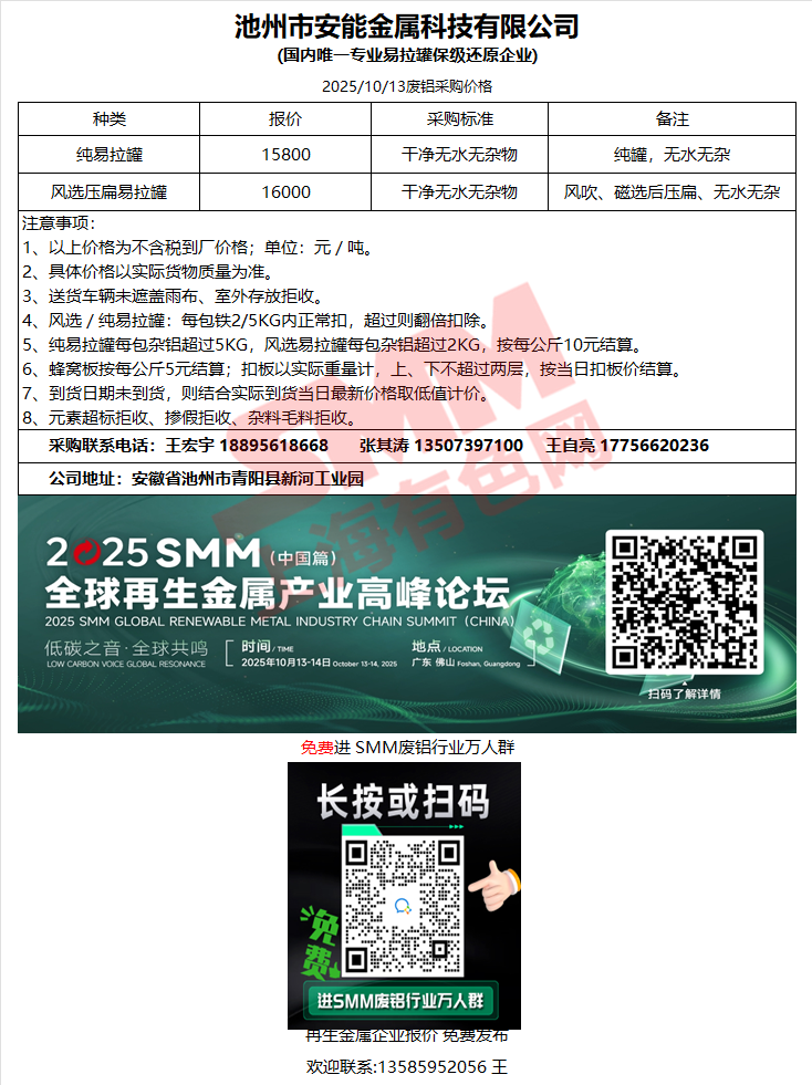 今日安能金属 废铝采购报价已更新,有货的朋友欢迎联系我们!