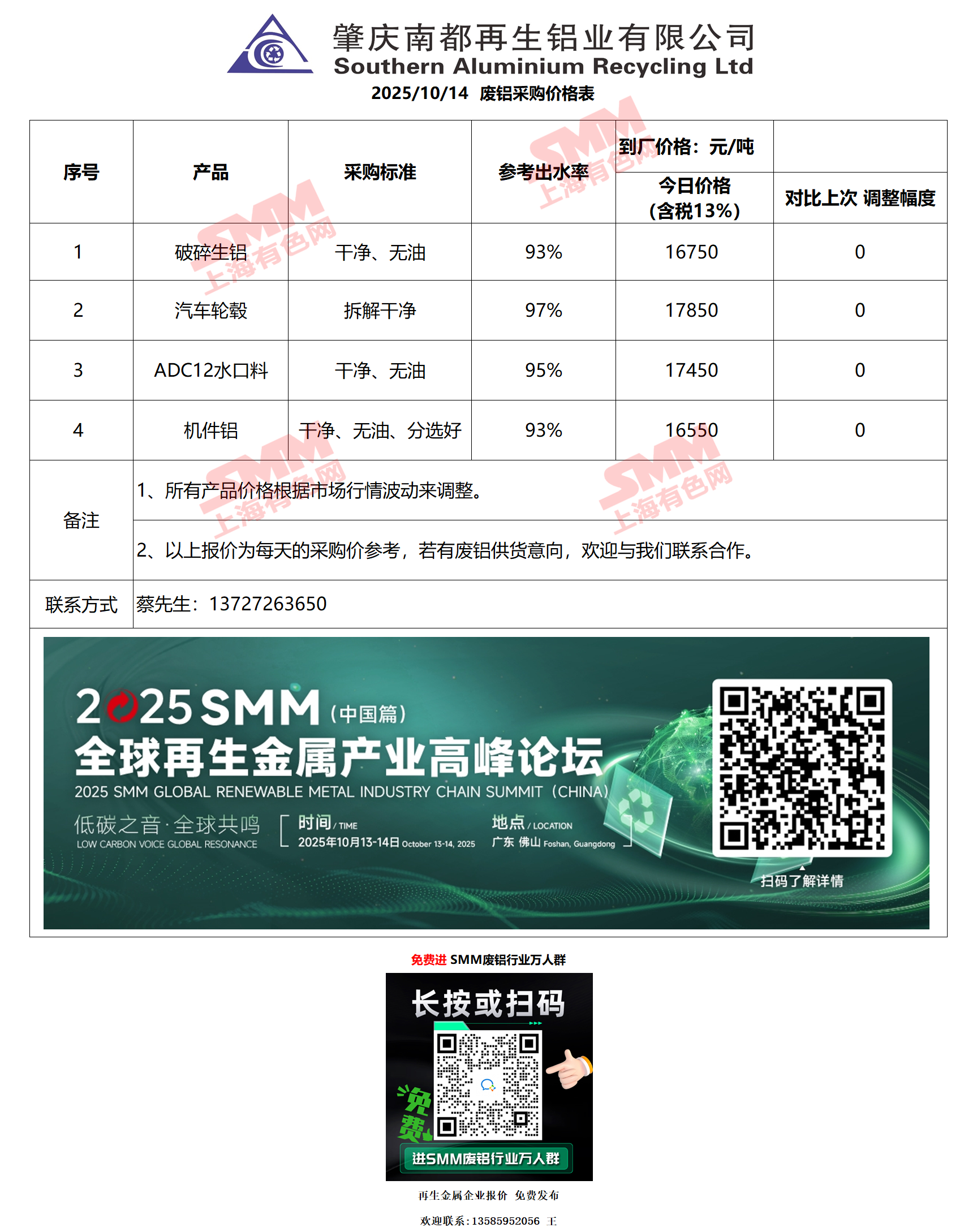 今日南都再生铝业 废铝采购报价已更新,有货的朋友欢迎联系我们!