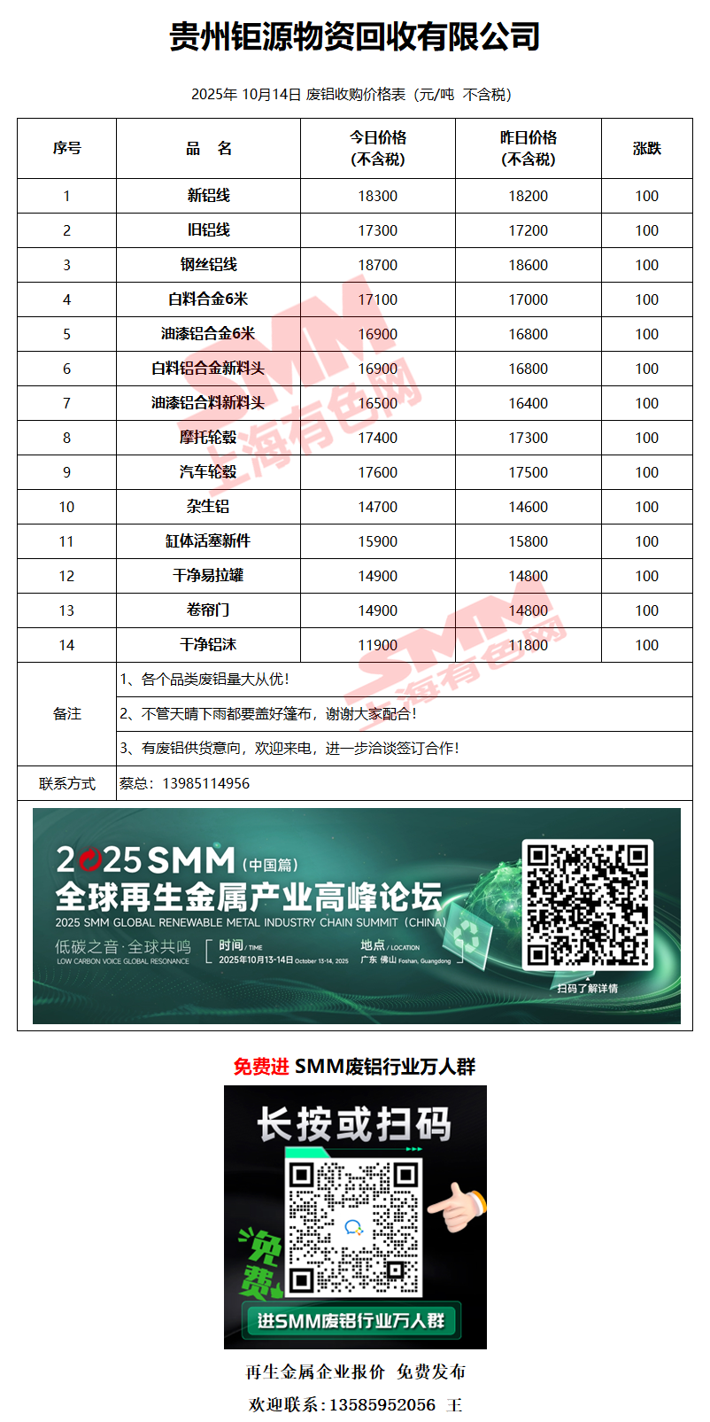 10月14日贵州钜源 废铝采购报价