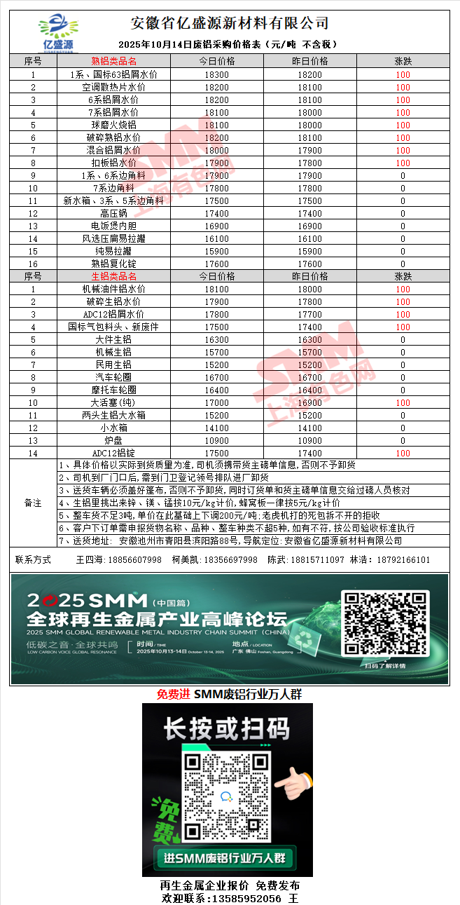 今日安徽亿盛源 废铝采购报价已更新,有货的朋友欢迎联系我们!