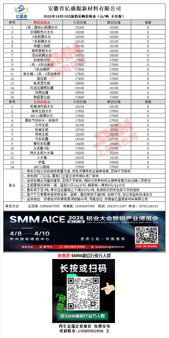 今日安徽亿盛源 废铝采购报价已更新,有货的朋友欢迎联系我们!