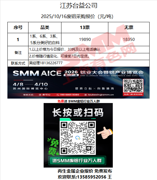 10月16日江苏台益 废铝采购报价