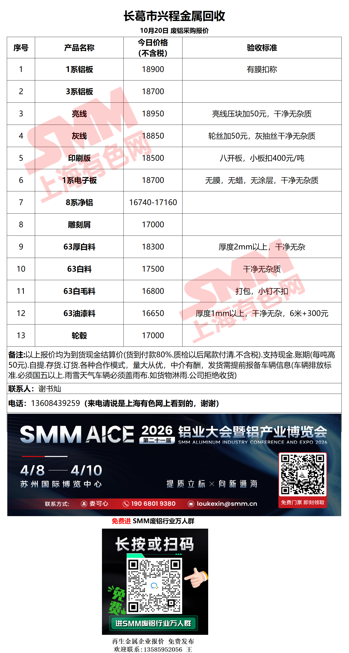 10月20日长葛兴程 废铝采购报价