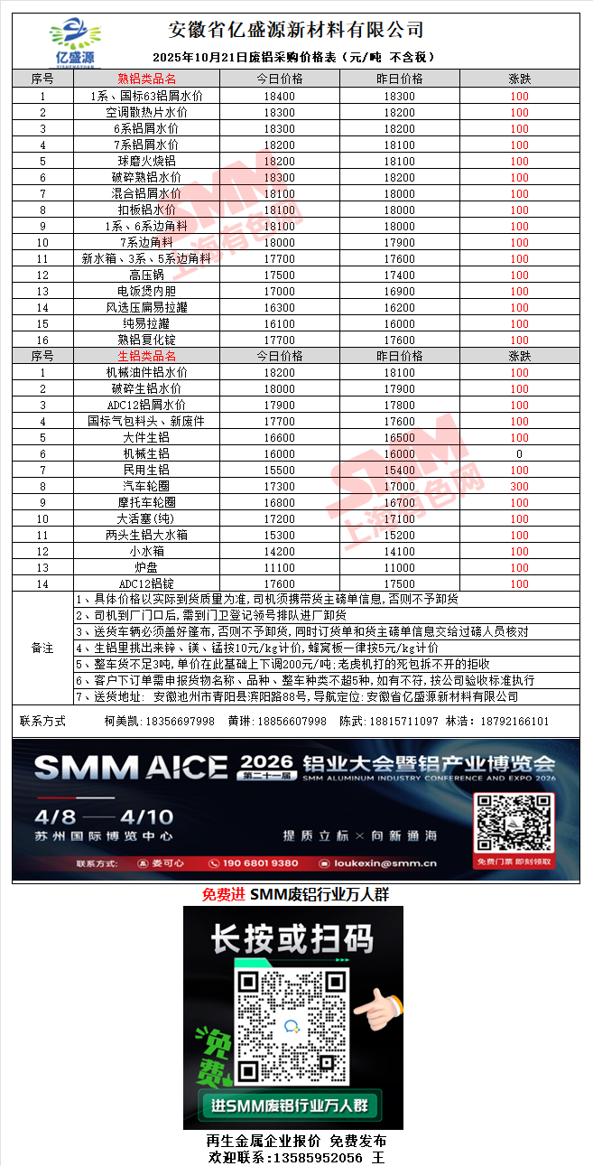 今日安徽亿盛源 废铝采购报价已更新,有货的朋友欢迎联系我们!