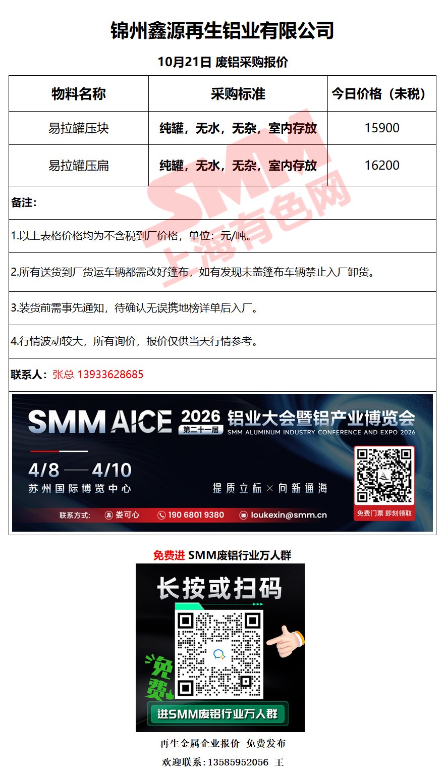 今日锦州鑫源 废铝采购报价已更新,有货的朋友欢迎联系我们!