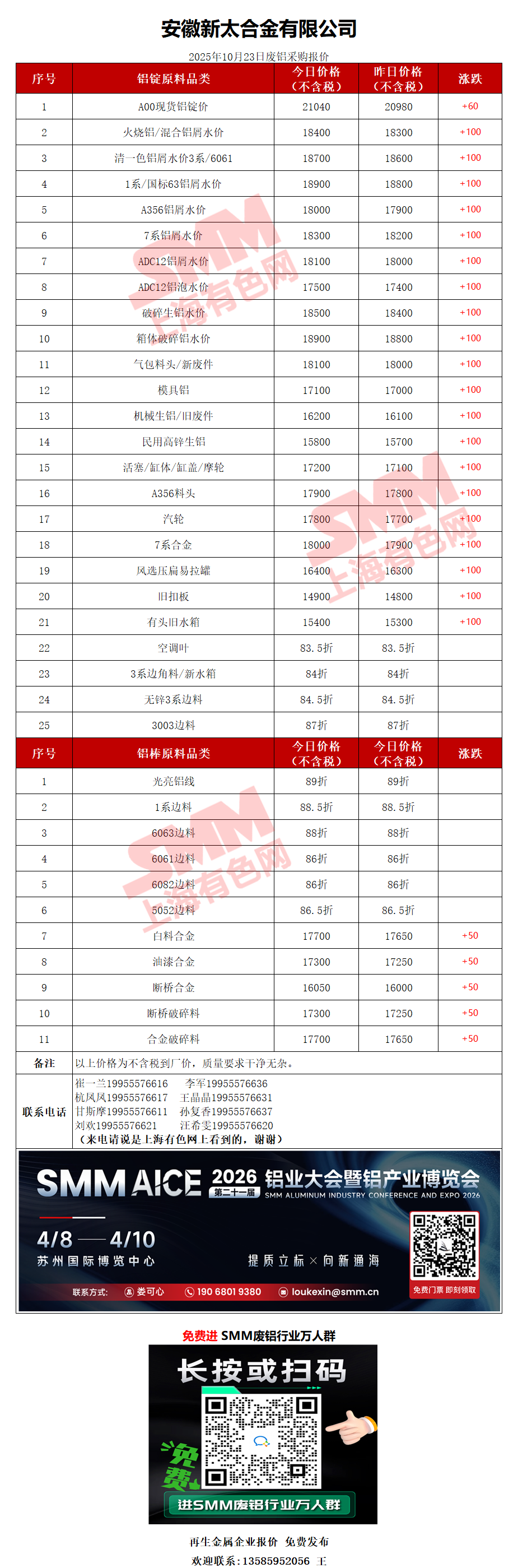10月23日安徽新太 废铝采购报价