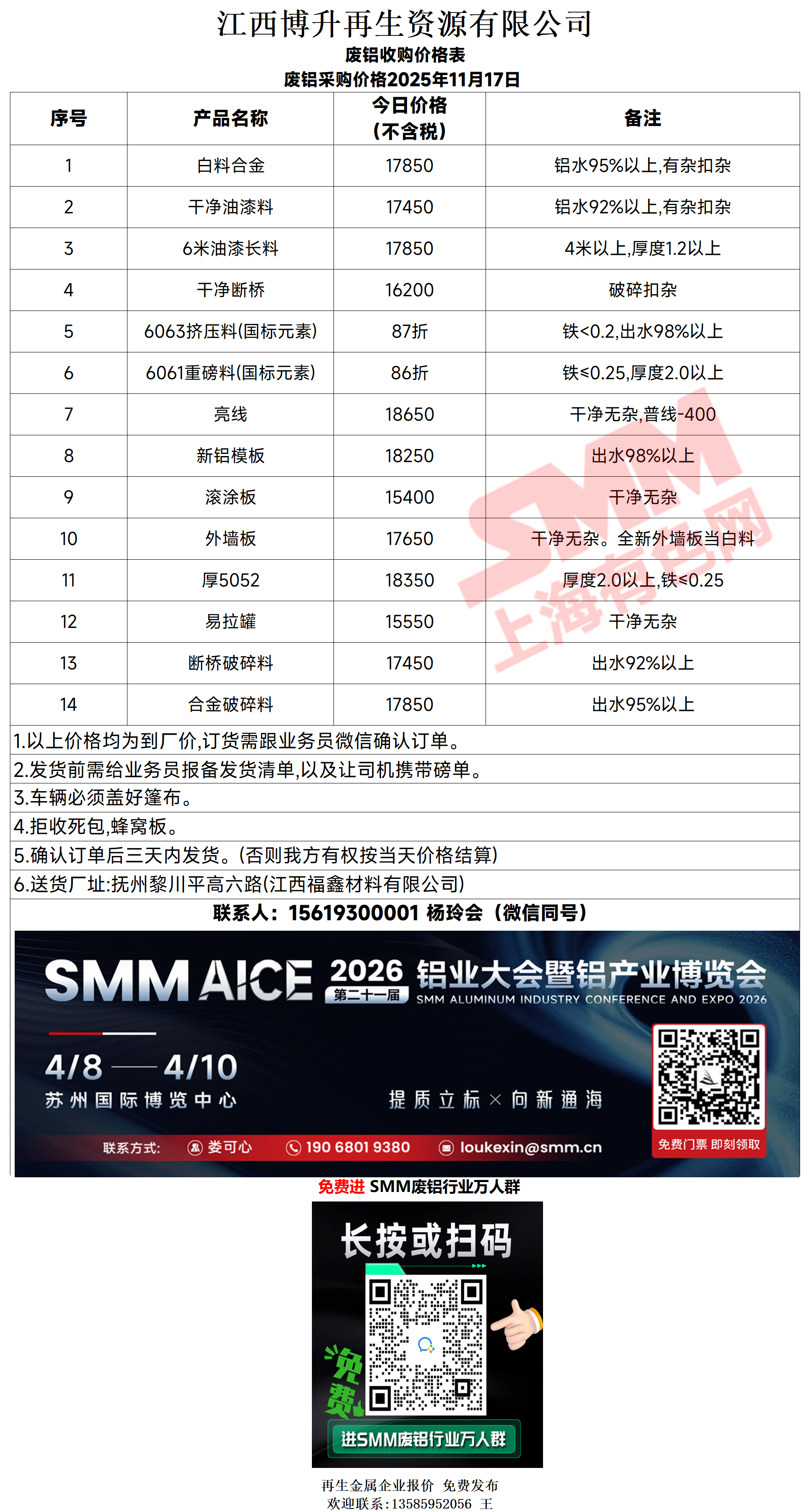 11月17日江西博升 废铝采购报价