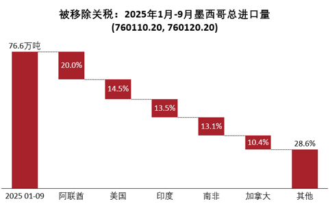 新税制对墨西哥各铝贸易伙伴国造成不均冲击: