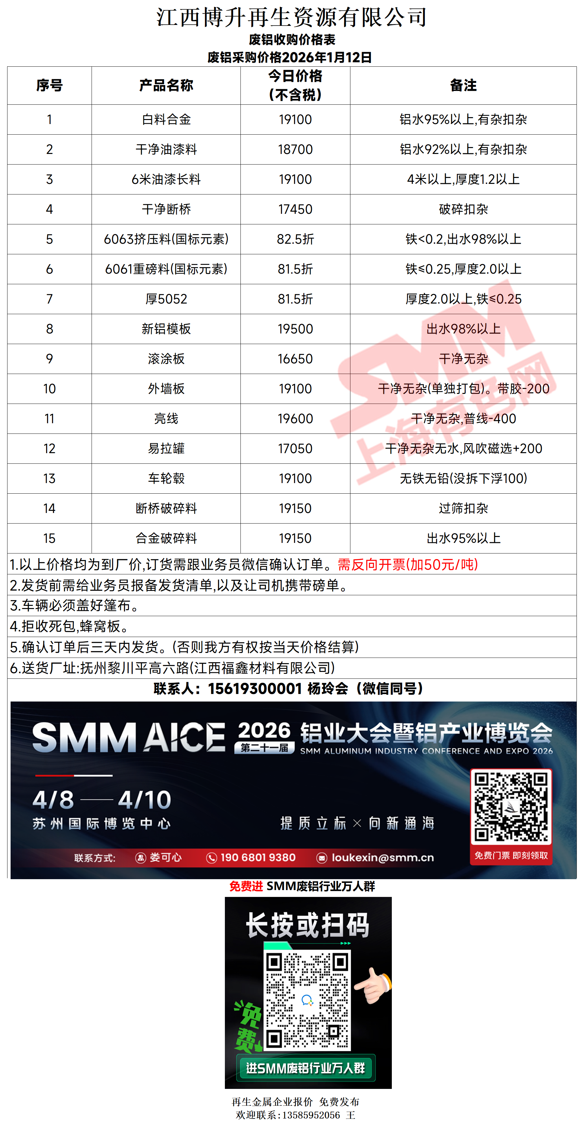 今日江西博升 废铝采购报价已更新,有货的朋友欢迎联系我们!