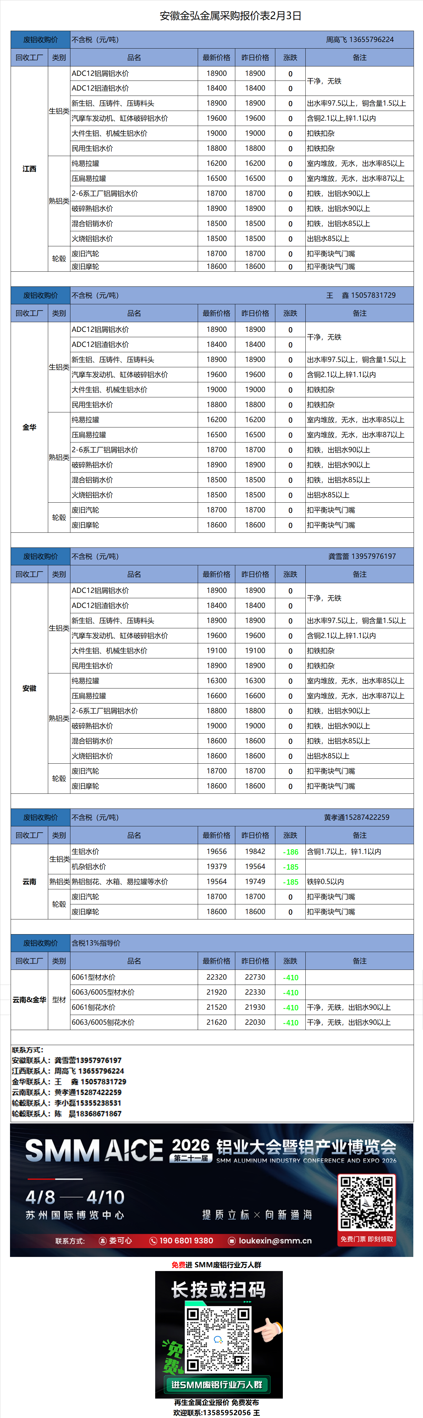 2月3日安徽凯飞 废铝采购报价