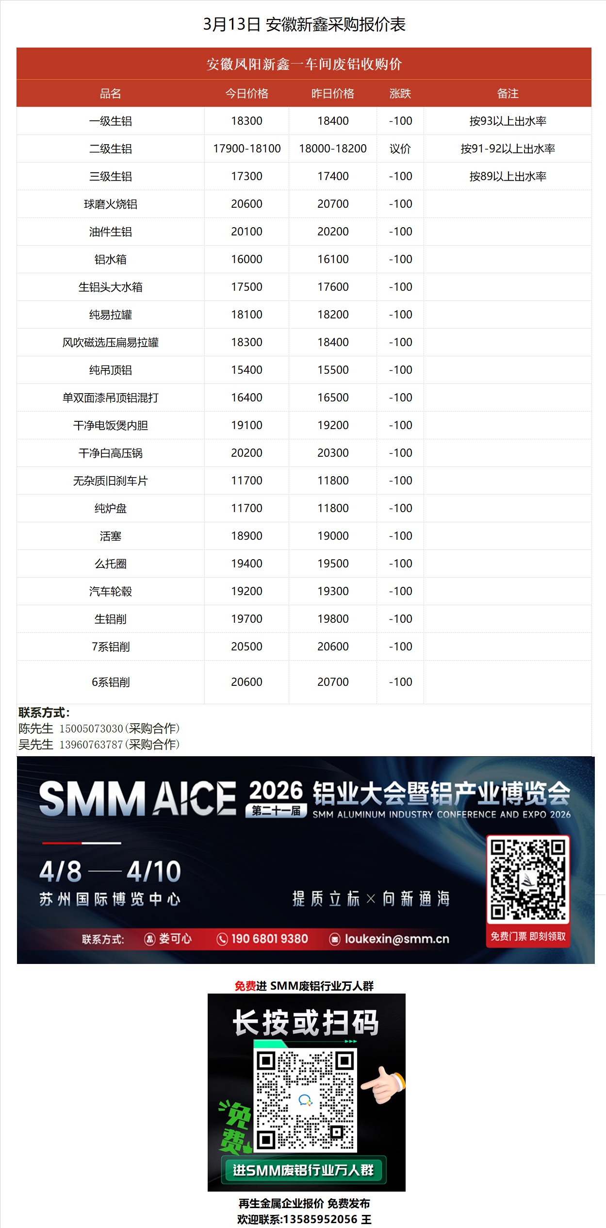 3月13日安徽新鑫 废铝采购报价