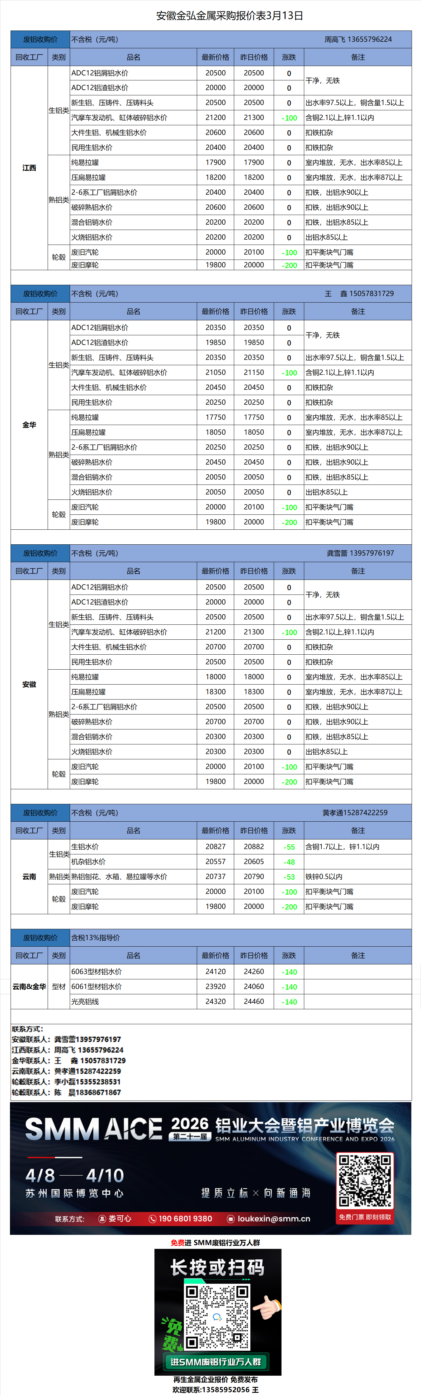今日安徽金弘 废铝采购报价已更新,有货的朋友欢迎联系我们!