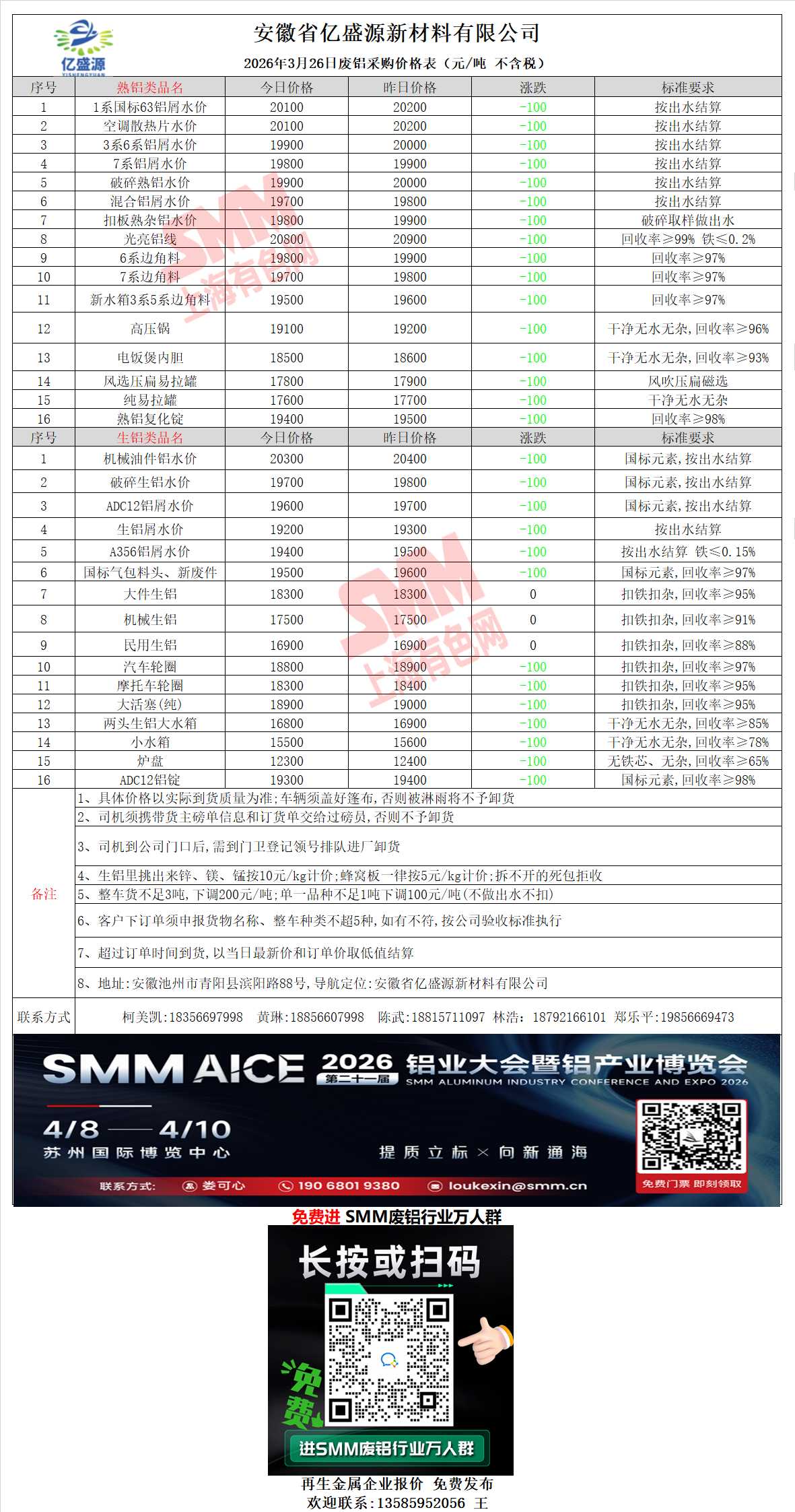 3月26日安徽亿盛源 废铝采购报价