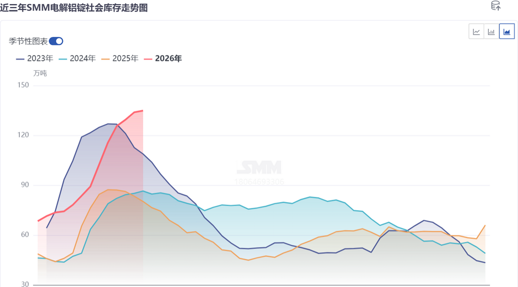 同期,俄铝海运货源集中到港,相关货源从保税库转运至华南地区仓库入库,新增外来货源进一步补充了华南市场的流通库存。这部分进口货源集中到库,叠加国内产区集中发货、长单提货延后的双重影响,三重货源共振,导致华南地区铝锭库存短时间内大幅走高,出现与全国市场相悖的异常累库行情。