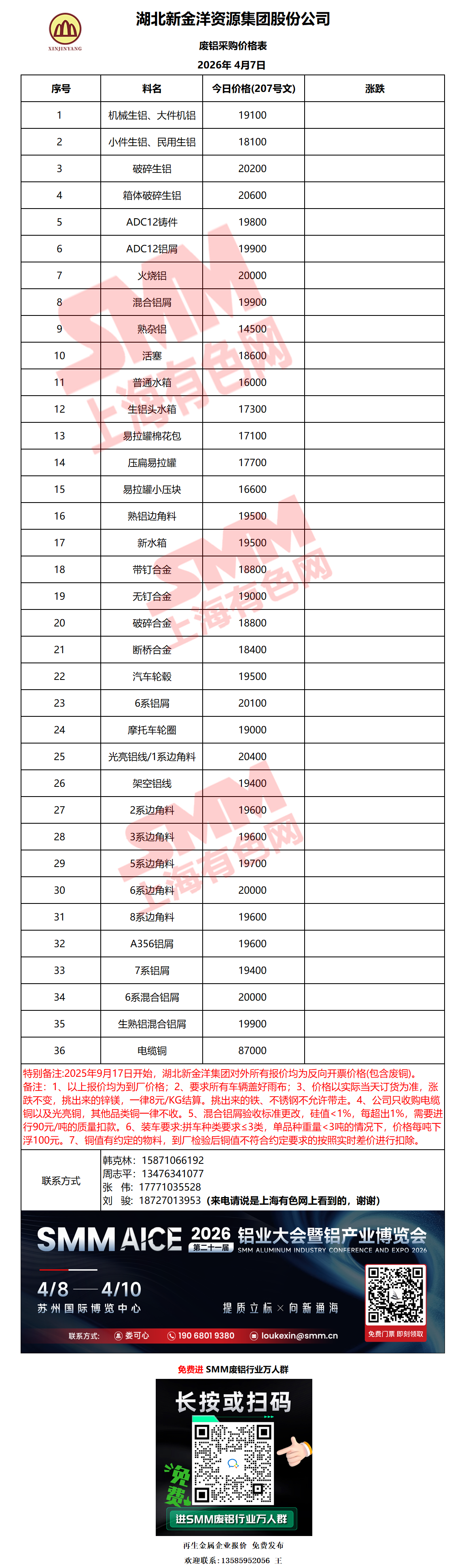 今日襄阳新金洋 废铝采购报价已更新,有货的朋友欢迎联系我们!