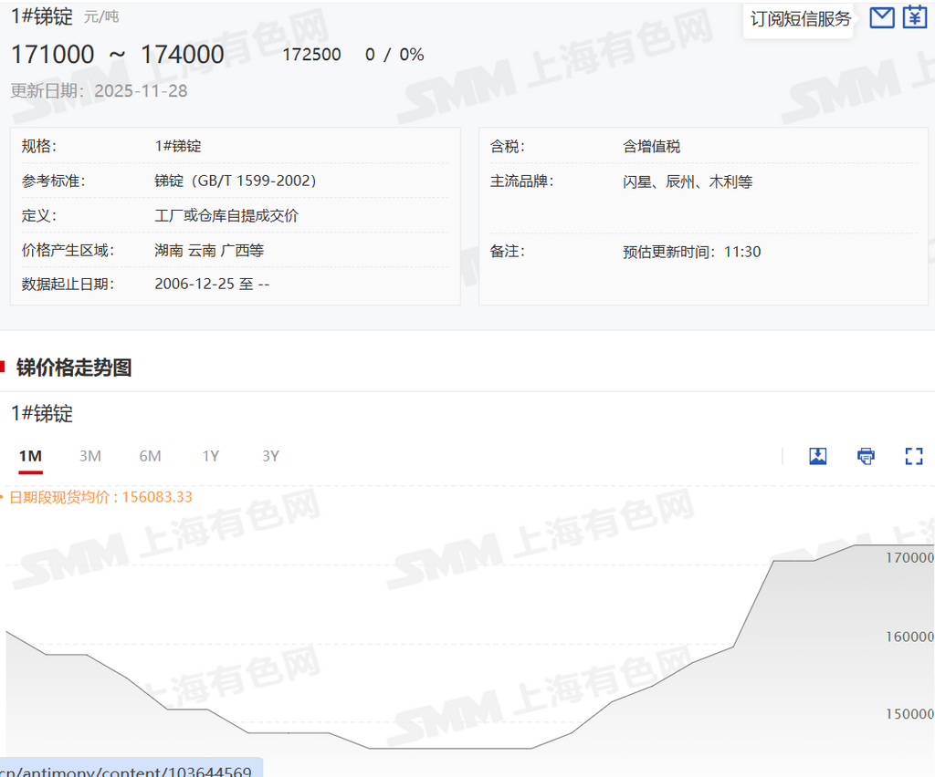 市场消息方面,据SMM评估,2025年11月中国锑锭(含锑锭、粗锑折算、阴极锑等)产量整体与上月相比,环比上涨13%左右,继续呈现连续上涨态势。详细来说,目前SMM评估的33家调研对象中停产厂家和上月相比增加1家;呈产量缩减状态的厂家和上月相比减少2家;产量基本正常的厂家比上月相比增加1家。从锑锭产量的情况来看,自9月回到4000吨以下水平之后,10月再次回到4000以上,11月继续有所反弹,不少市场人士认为这也是正常现象,毕竟目前全国产量还是处于历史低位,目前的月度产量还是与正常生产水平相差较远。目前市场原料还是相对紧张,并相对集中,不少厂家依旧无米下锅状态。市场人士表示预计2025年12月全国锑锭产量较11月相比变化可能不会太大,维持稳定的可能更大。