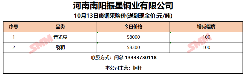 10月13日南阳振星 废铜采购报价