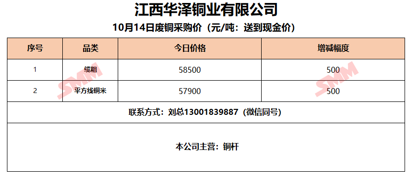 10月14日江西华泽铜业 废铜采购报价