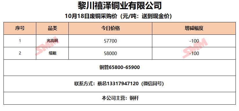 10月18日黎川禧泽铜业 废铜采购报价