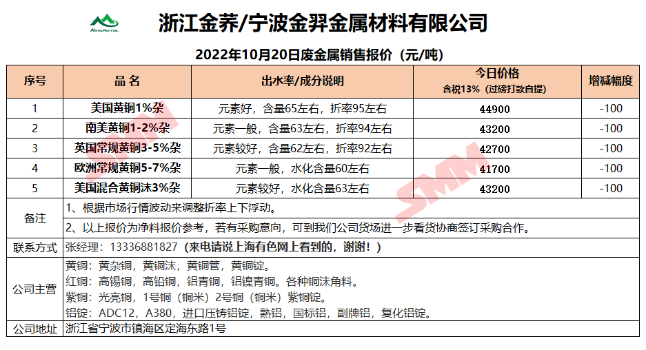 再生金属企业报价合作需求,欢迎联系:13585952056 王