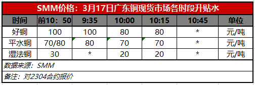 3月17日广东铜现货市场各时段升贴水(第三时段10:15)【SMM价格】