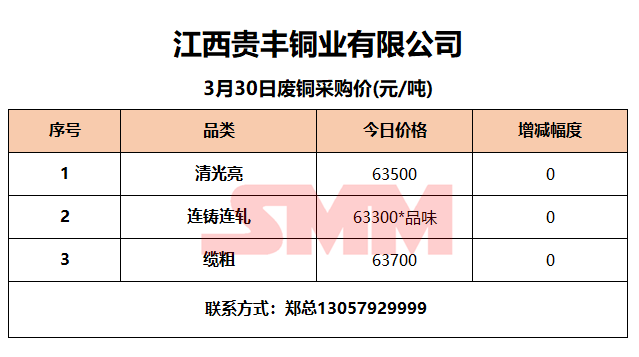 3月30日江西贵丰 废铜采购报价