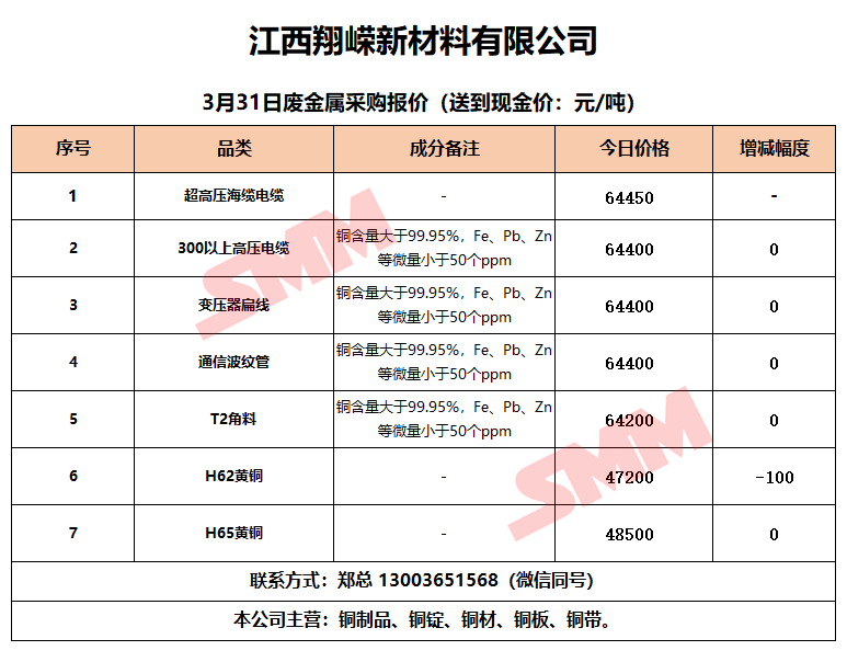 今日江西翔嵘新材料,废铜采购报价已更新,有货的朋友欢迎联系我们!