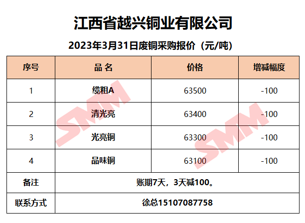 3月31日江西越兴 废铜采购报价