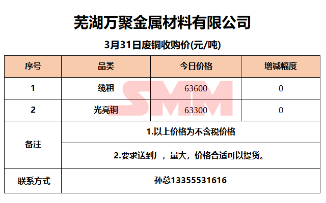 今日芜湖万聚金属,废铜收购报价已更新,有货的朋友欢迎联系我们!