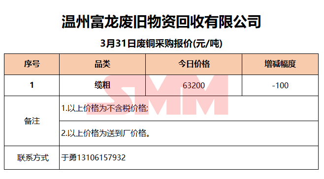 3月31日温州富龙废旧 废铜采购报价