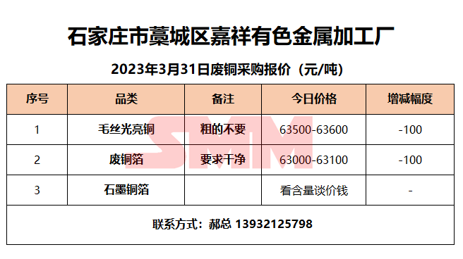 3月31日嘉祥有色金属 废铜采购报价
