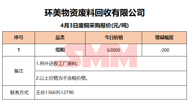 4月3日环美物资 废铜采购报价