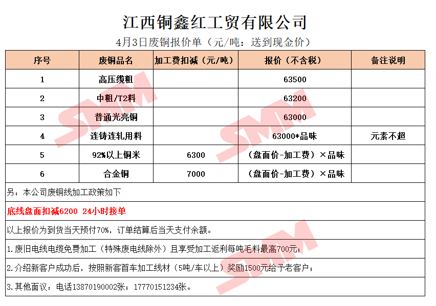 4月3日江西铜鑫红 废铜采购报价