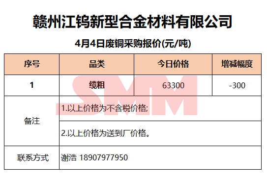 4月4日赣州江钨 废铜采购报价