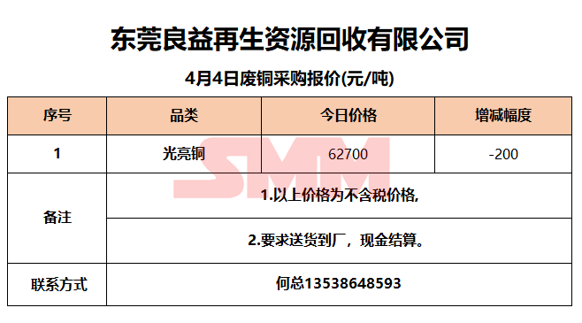 4月4日东莞良益 废铜采购报价