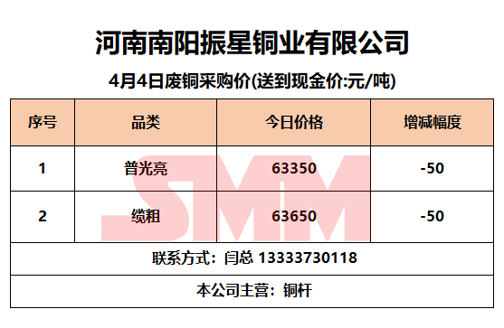 今日南阳振星,废铜采购报价已更新,有货的朋友欢迎联系我们!