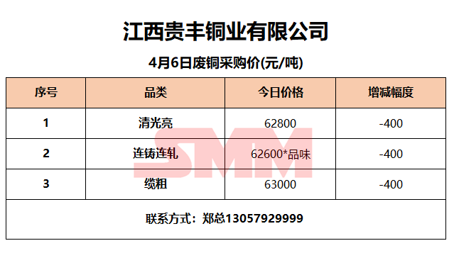 今日江西贵丰铜业,废铜采购报价已更新,有货的朋友欢迎联系我们!