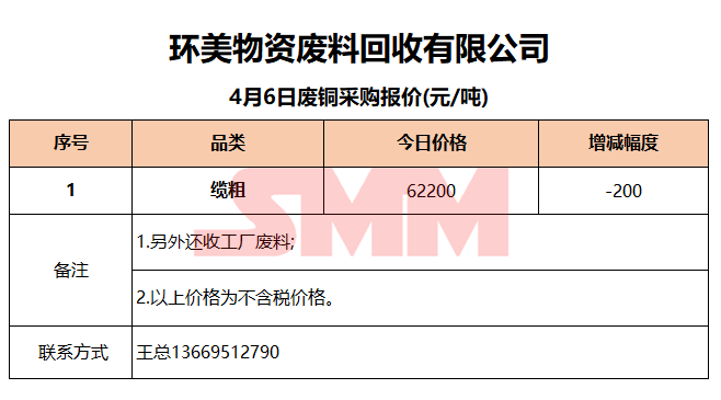 4月6日环美物资 废铜采购报价
