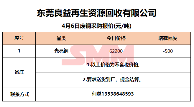 4月6日东莞良益 废铜采购报价