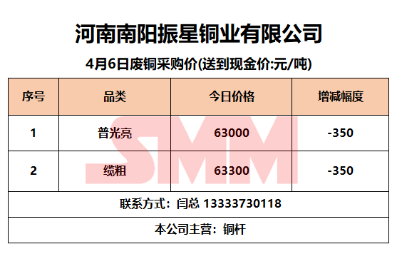 4月6日南阳振星 废铜采购报价