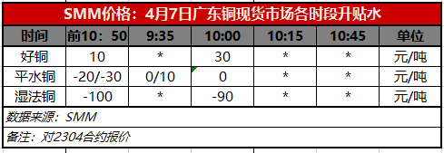 4月7日广东铜现货市场各时段升贴水(第二时段10:00)【SMM价格】